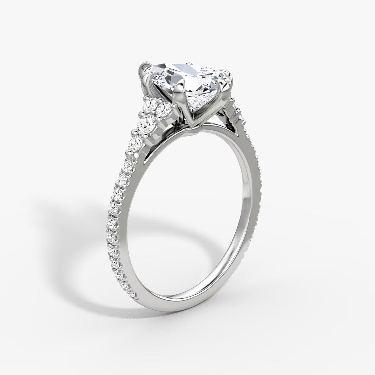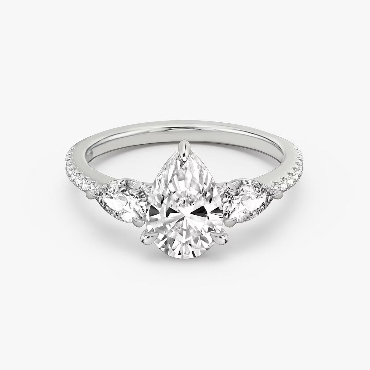 Pear Cut - Pave Band - Three Stone Ring - 0.25 Ct Side Stone each - 18 K Gold