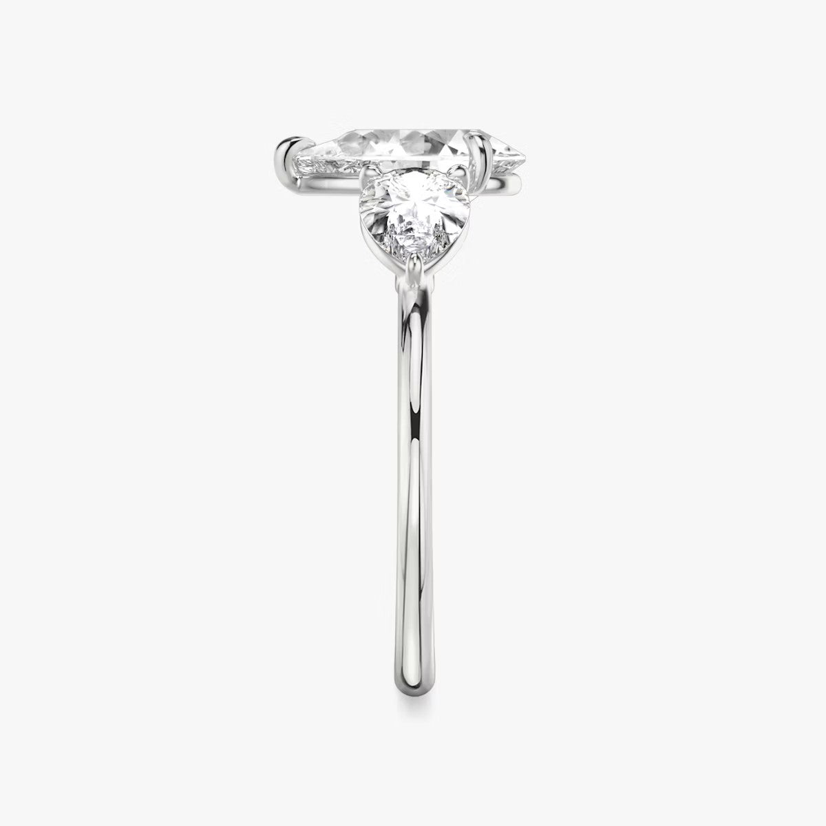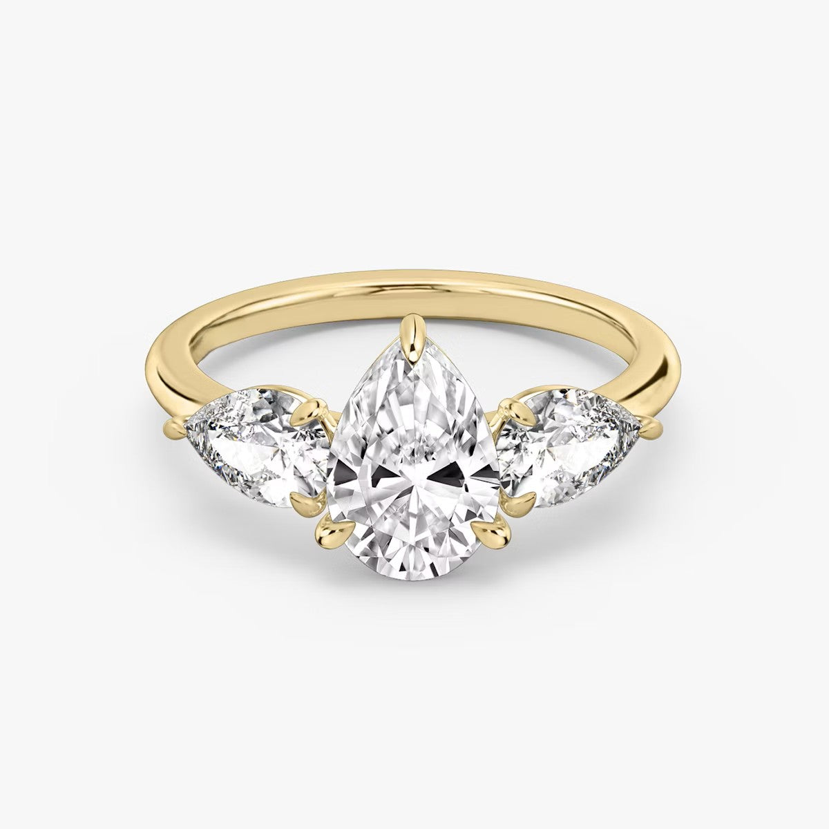 Pear Cut - Plain Band - Three Stone Ring- 0.5 Ct Side Stone each - 14 K Gold