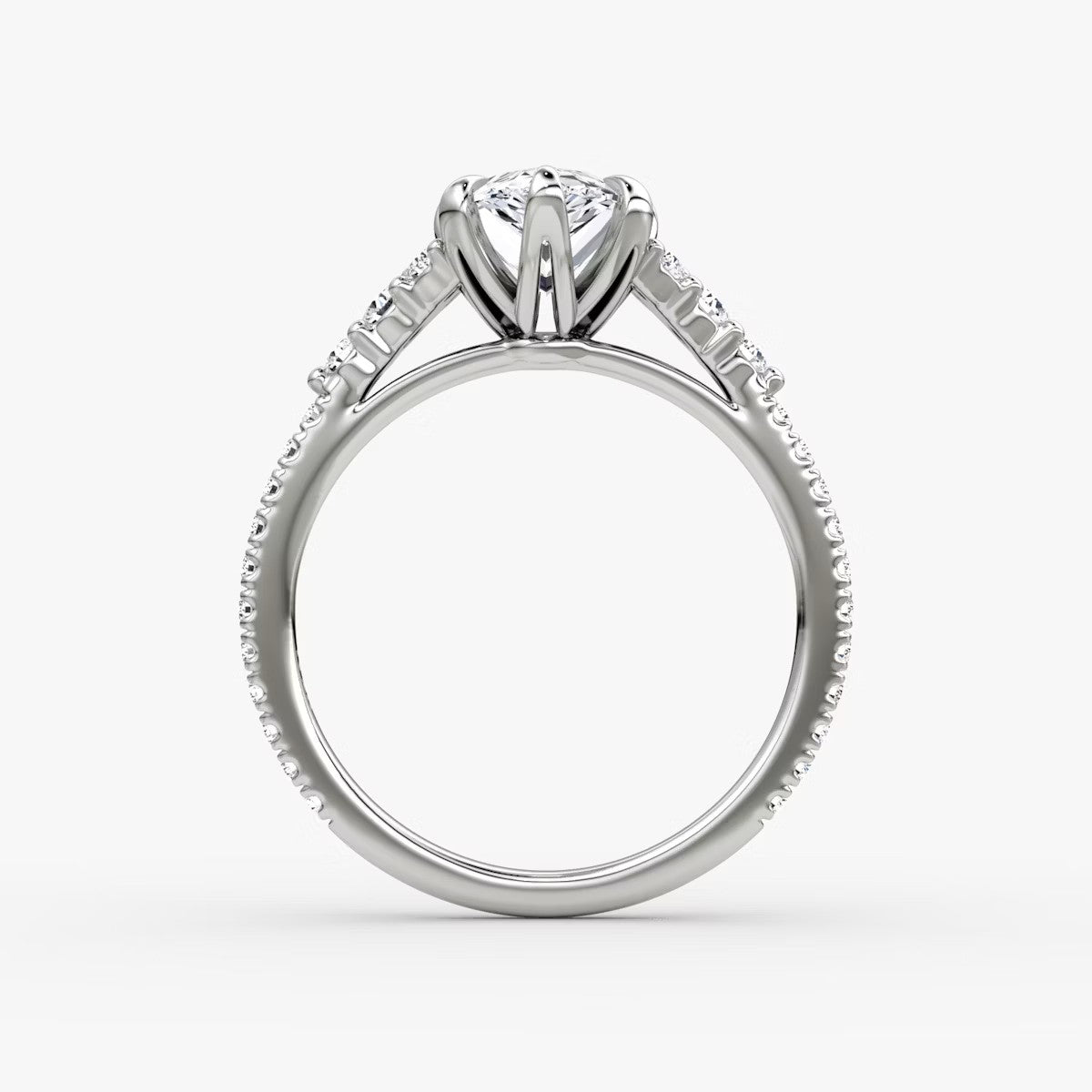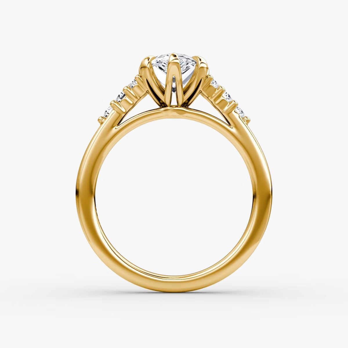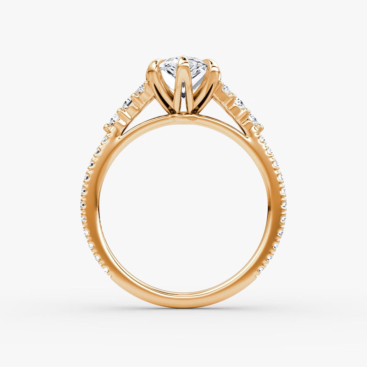 Pear Cut - Pave Band - 6 Prong Classic Ring - 14 K Gold