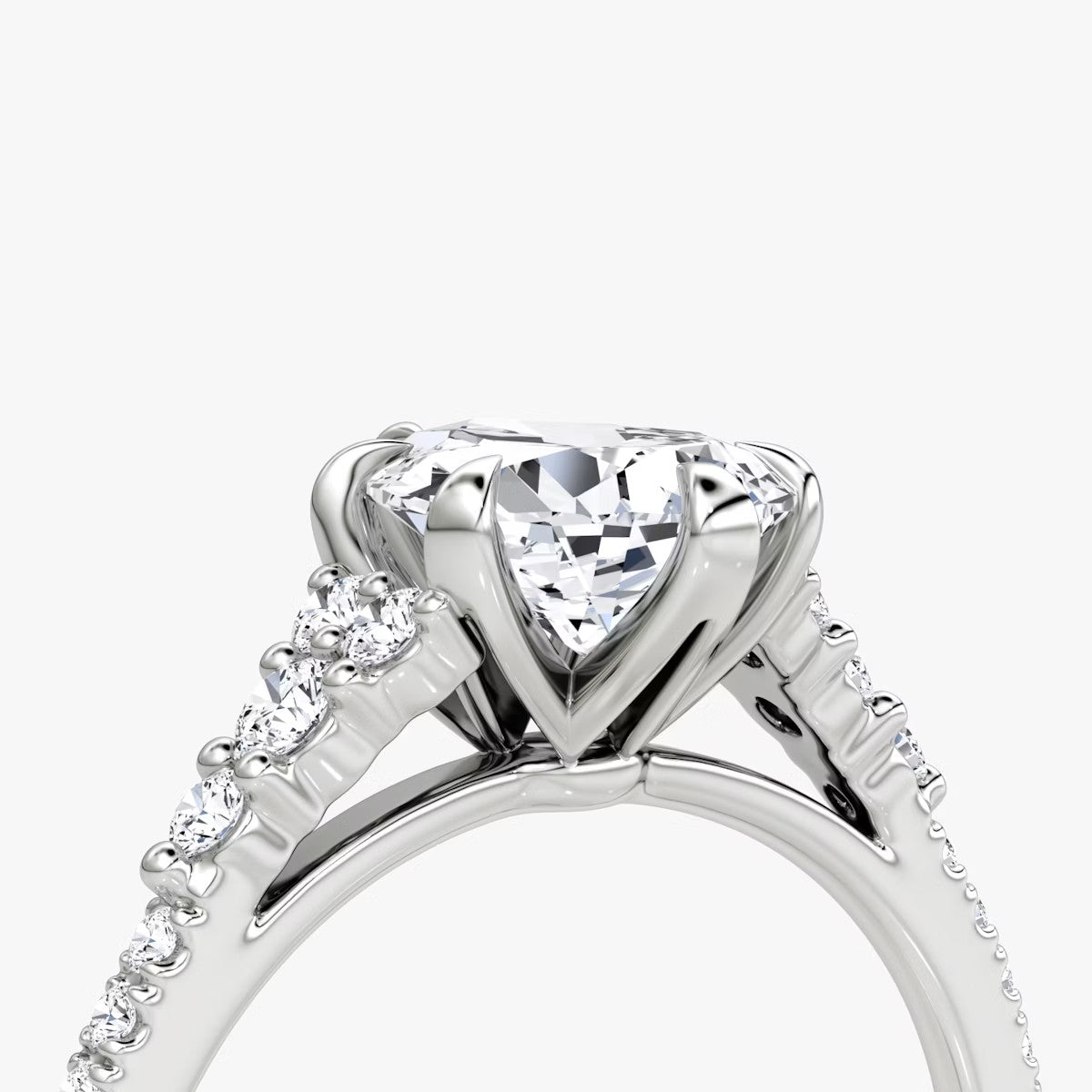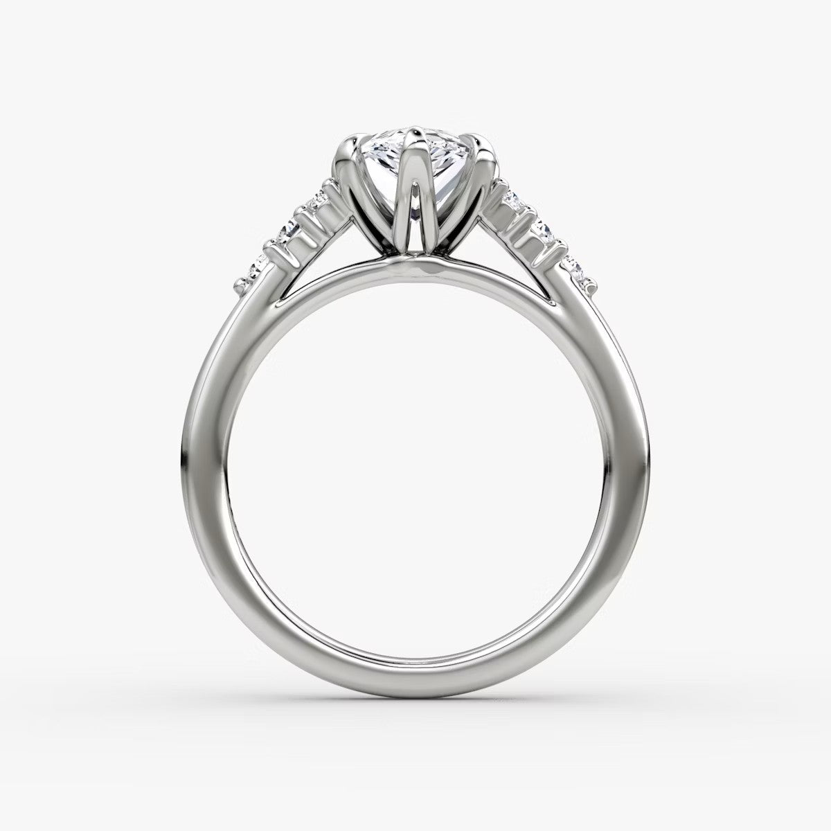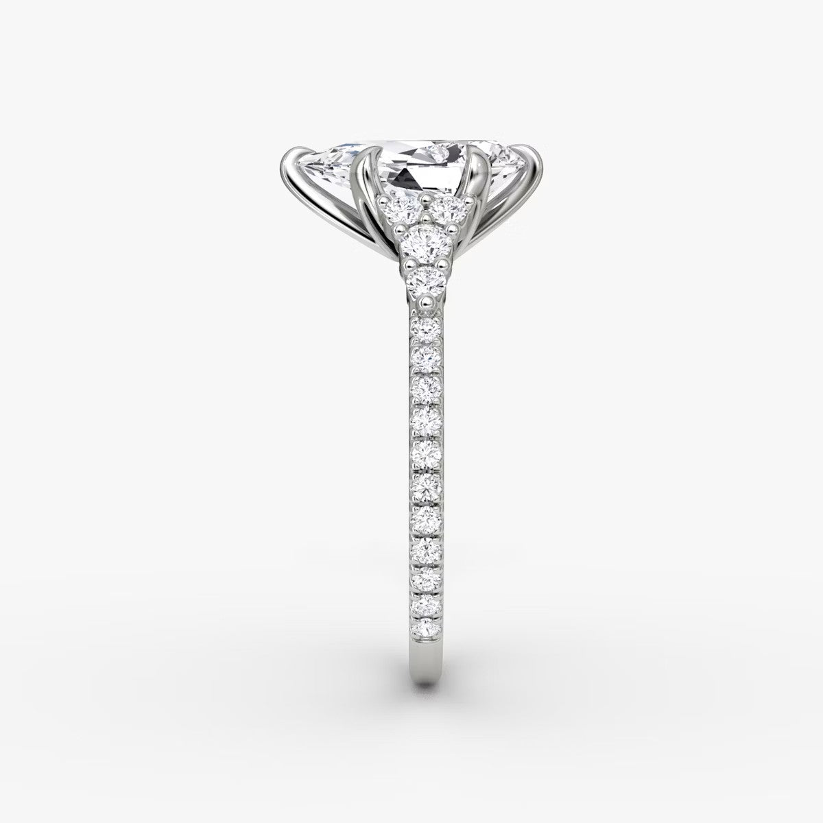 Pear Cut - Pave Band - 6 Prong Classic Ring - 14 K Gold