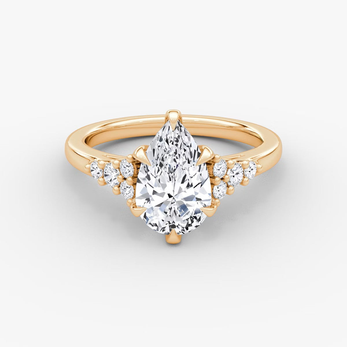 Pear Cut - Plain Band - Cluster Ring - 14 K Gold