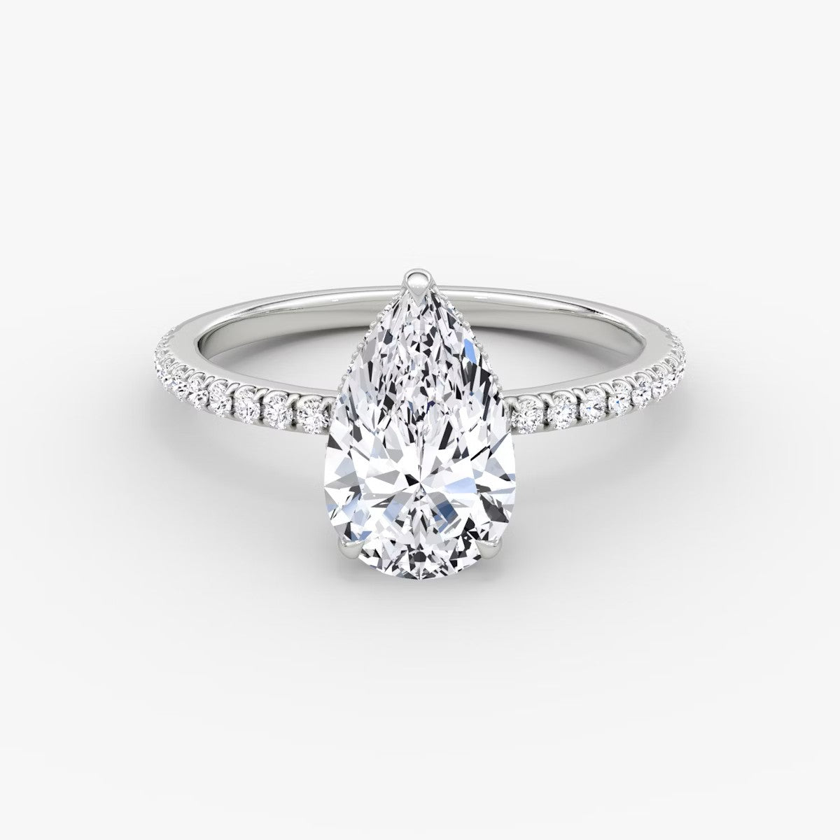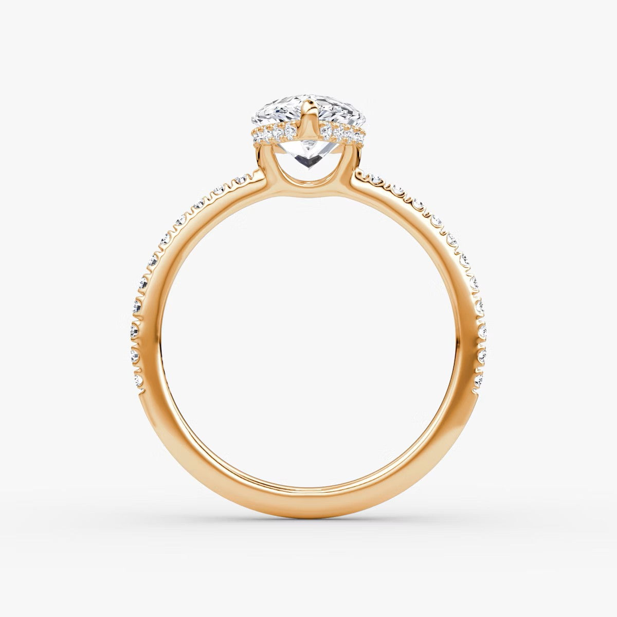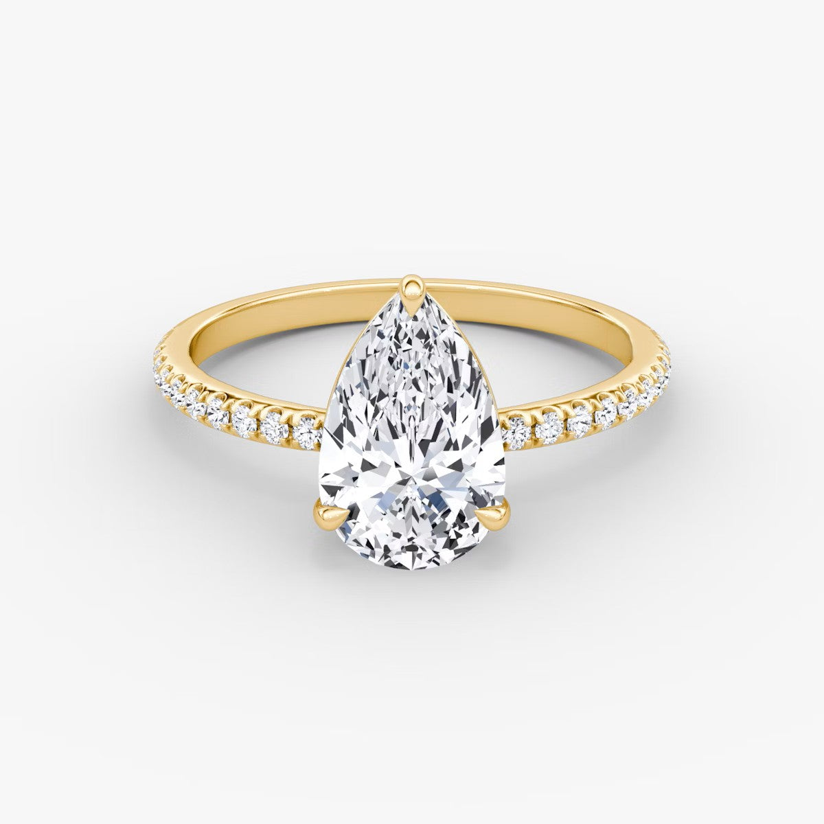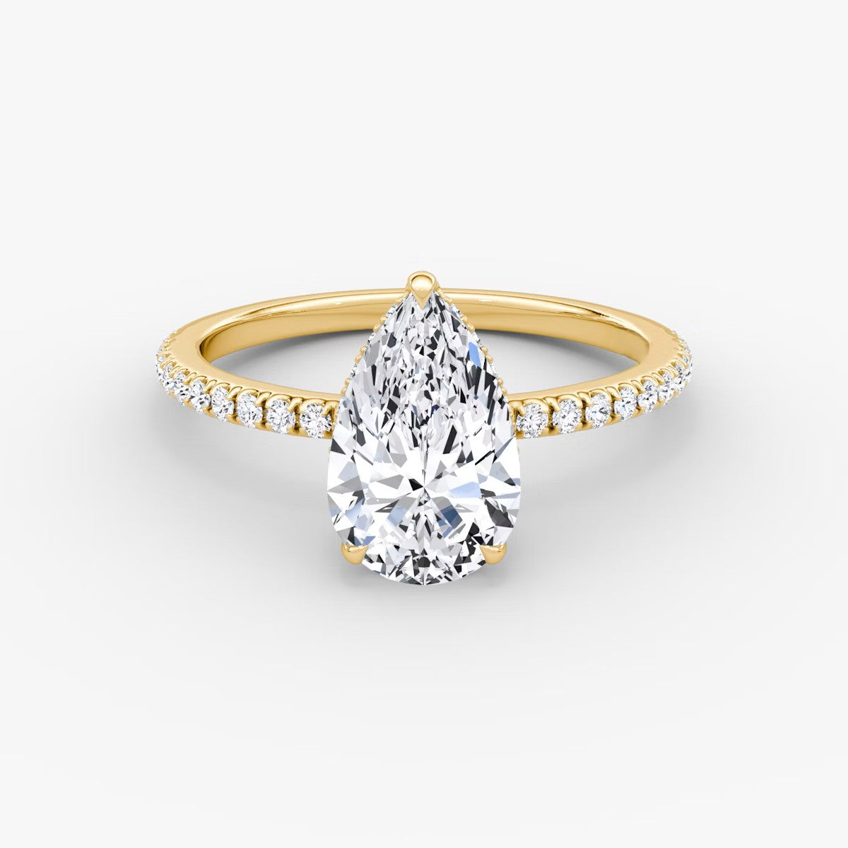 Pear Cut - Pave Band Hidden Halo - Classic Engagement Ring- 14 K Gold