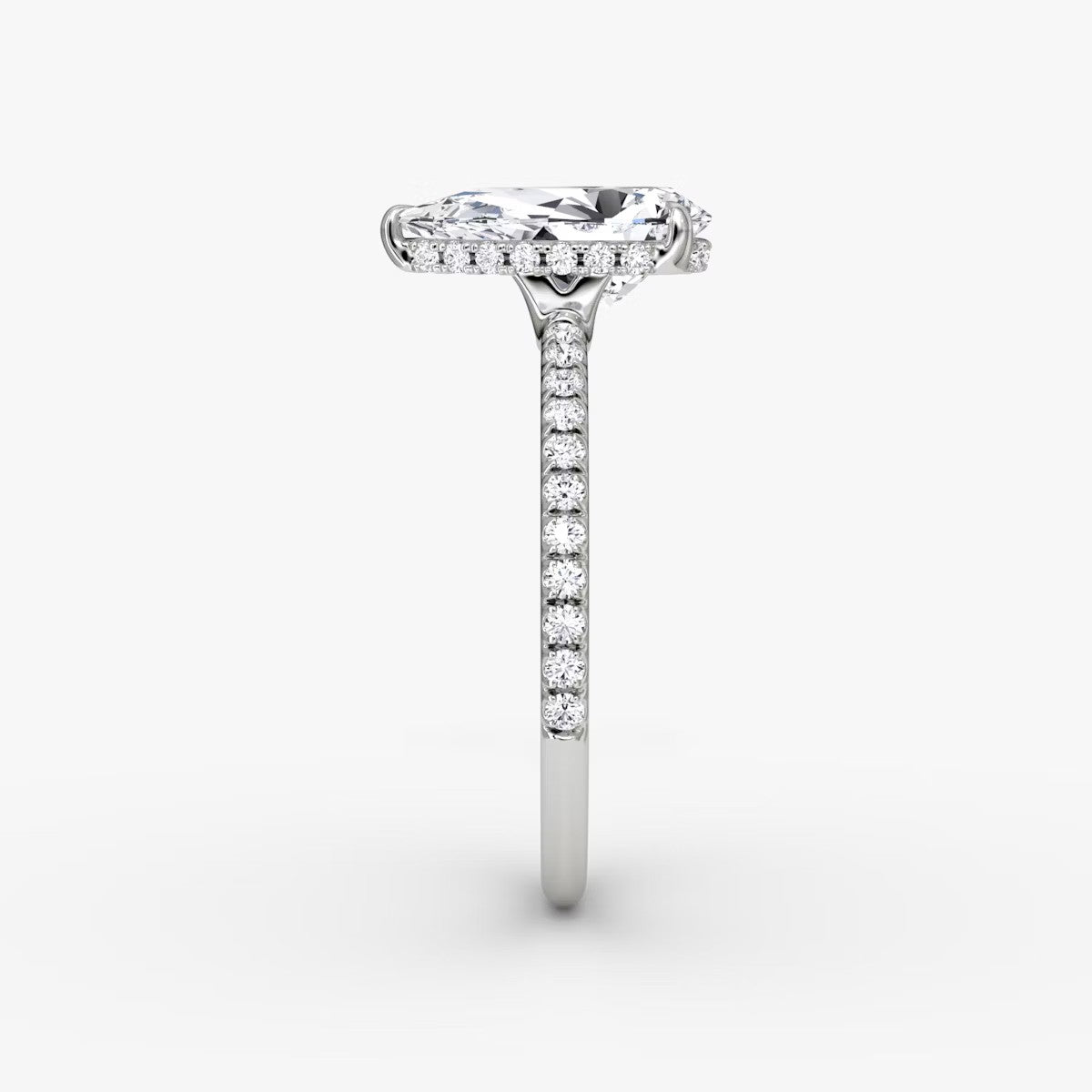 Pear Cut - Pave Band Hidden Halo - Classic Engagement Ring- 18 K Gold
