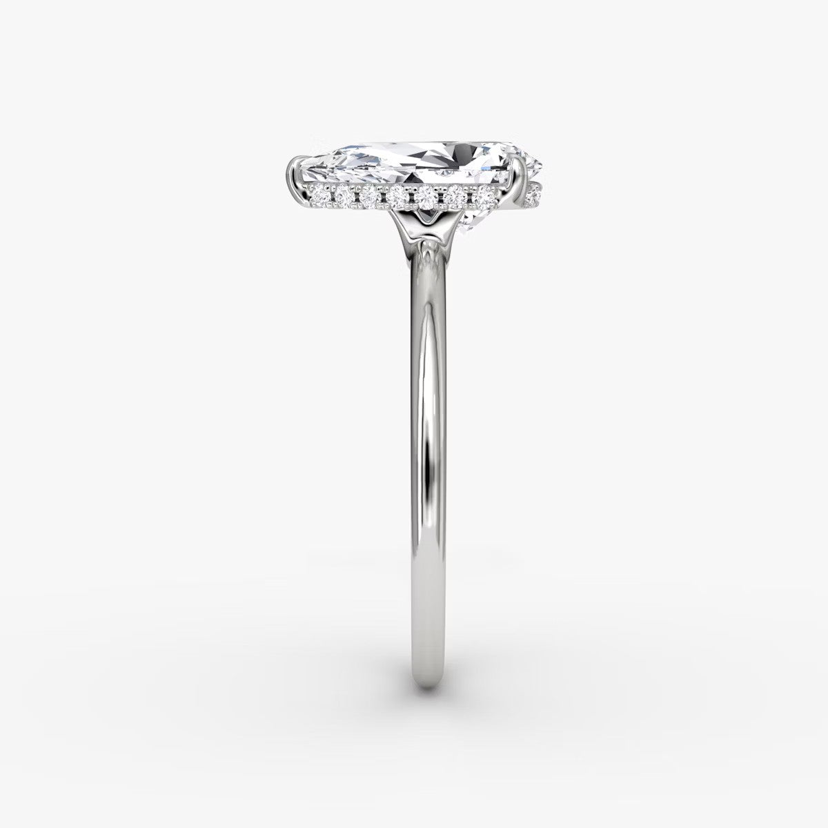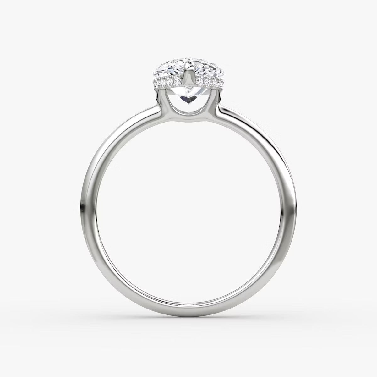 Pear Cut - Plain Band Hidden Halo - Classic Engagement Ring- 14 K Gold