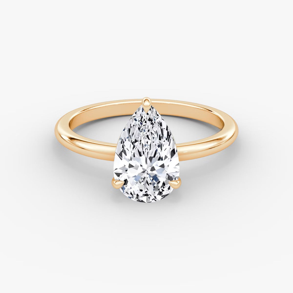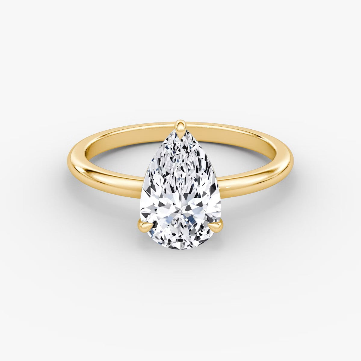 Pear Cut - Plain Band - Classic Engagement Ring- 14 K Gold