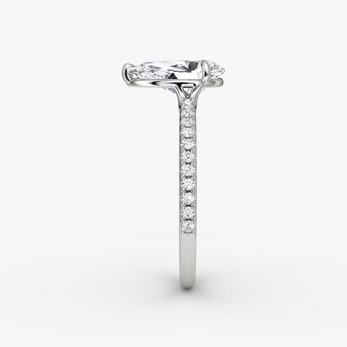 Pear Cut - Pave Band - Classic Engagement Ring- 18 K Gold