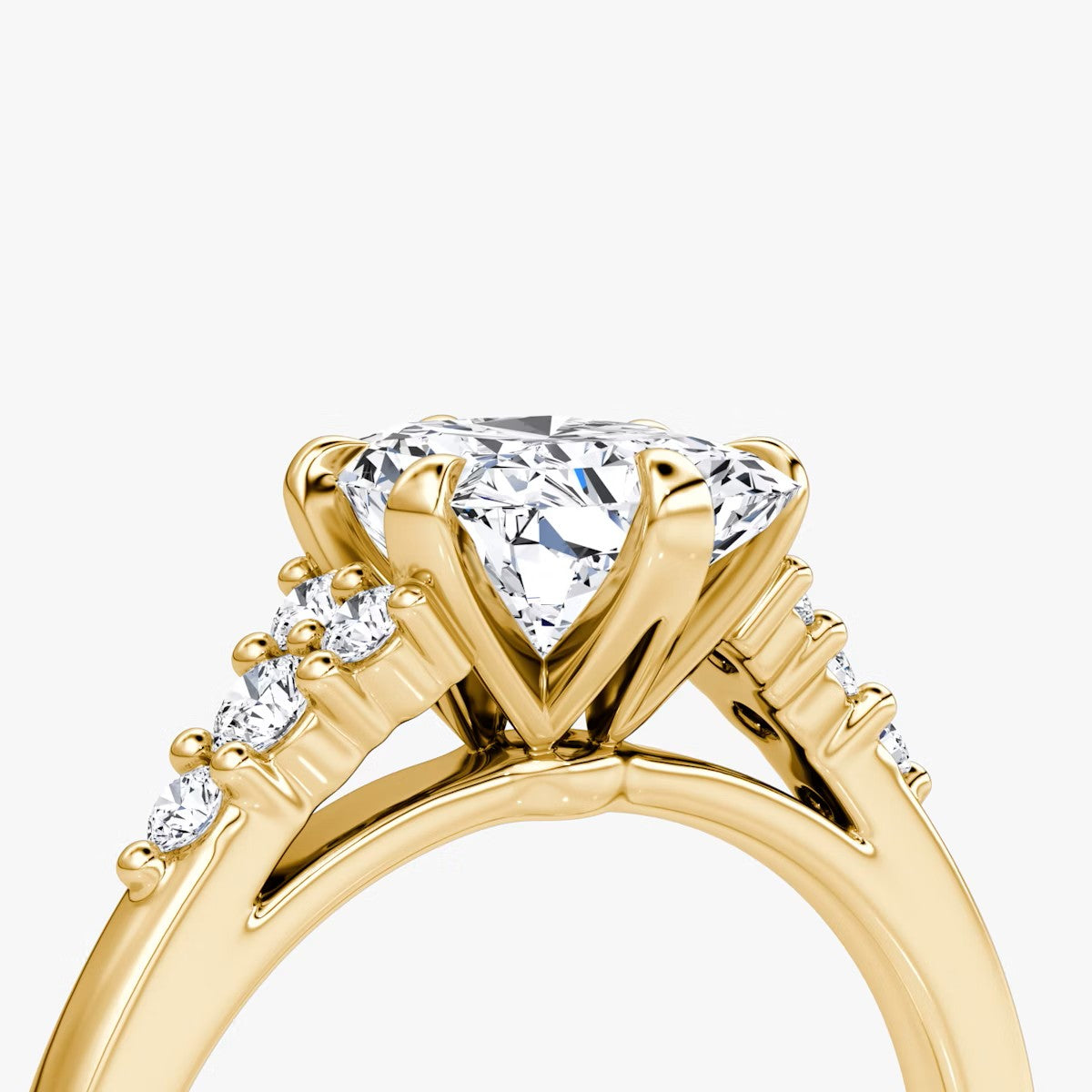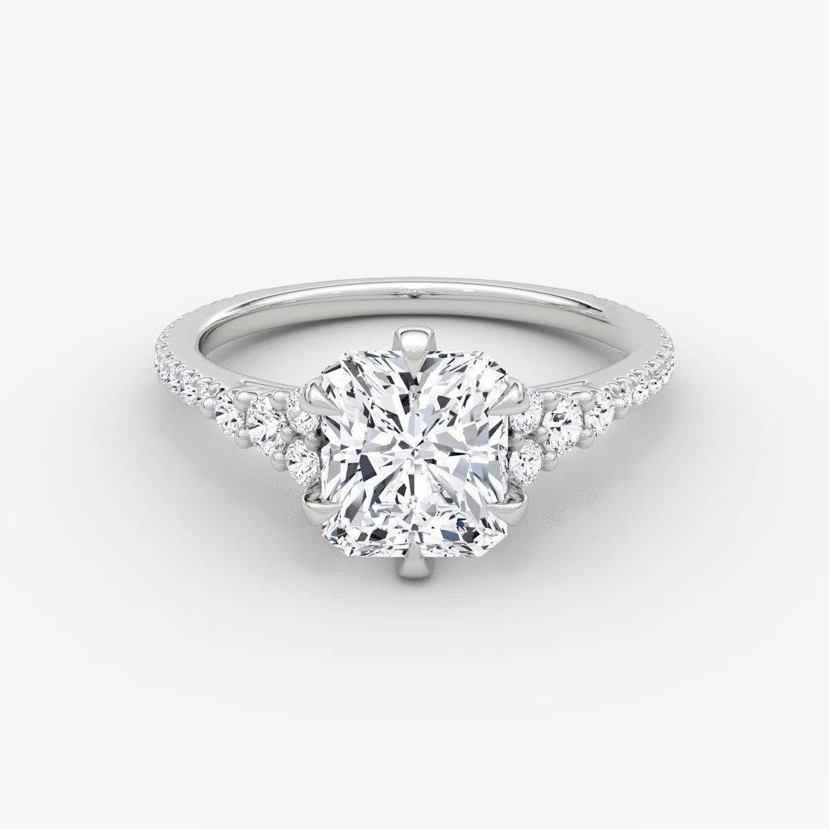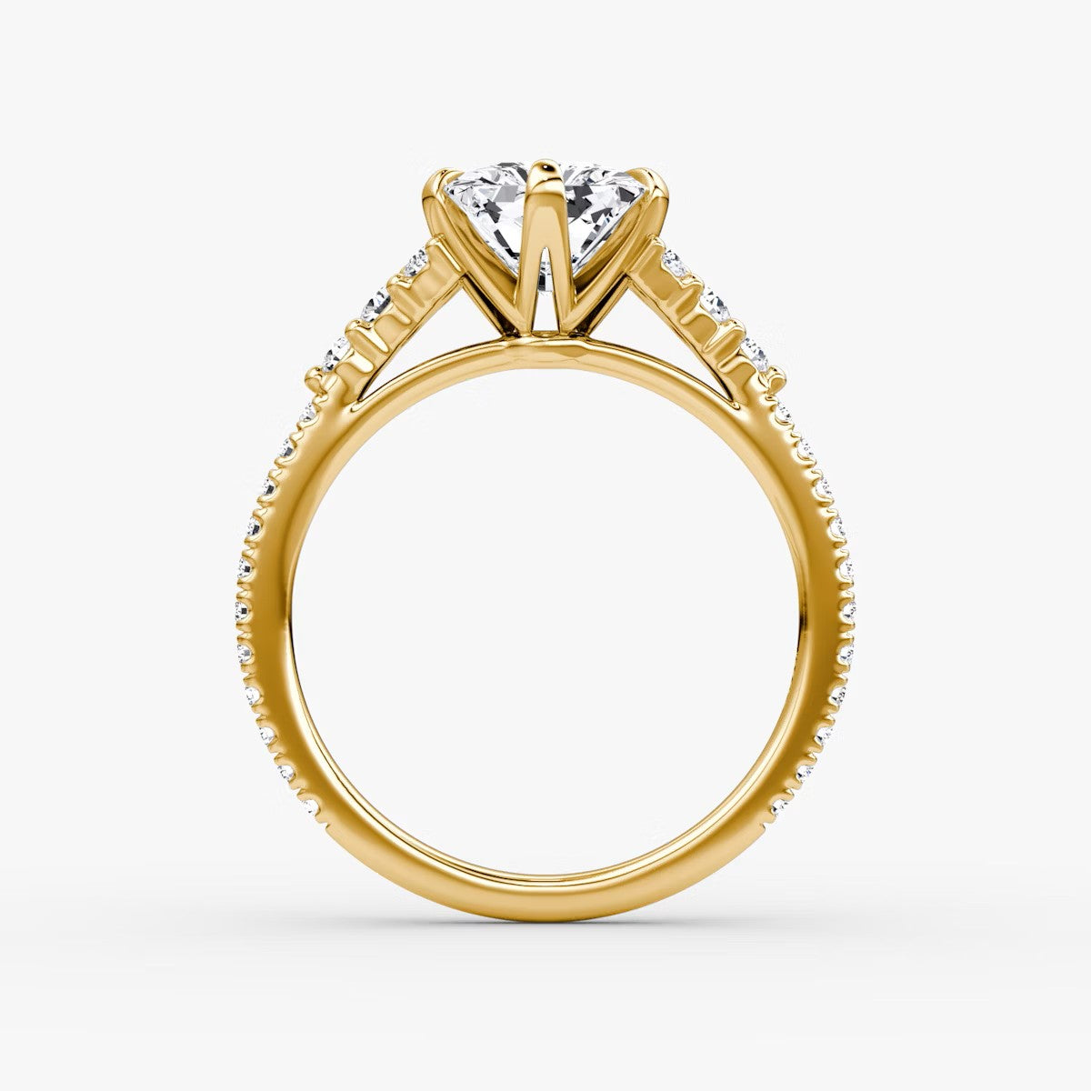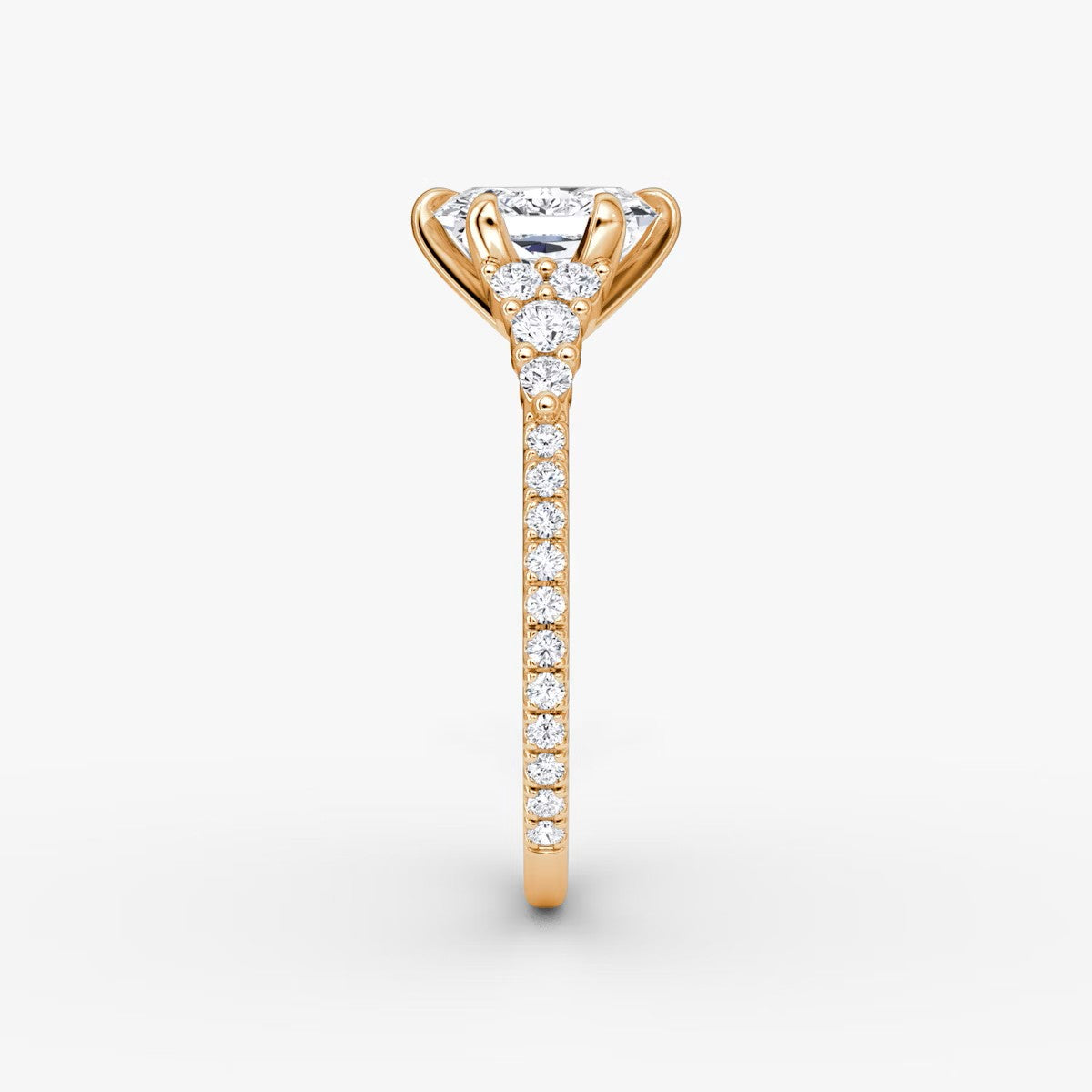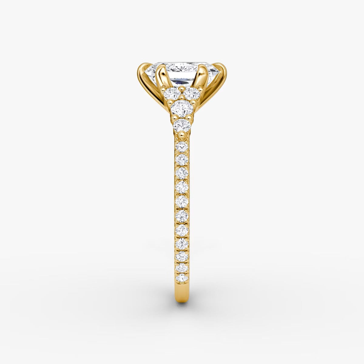 Radiant Cut - Pave Band - 6 Prong Classic Ring - 18 K Gold