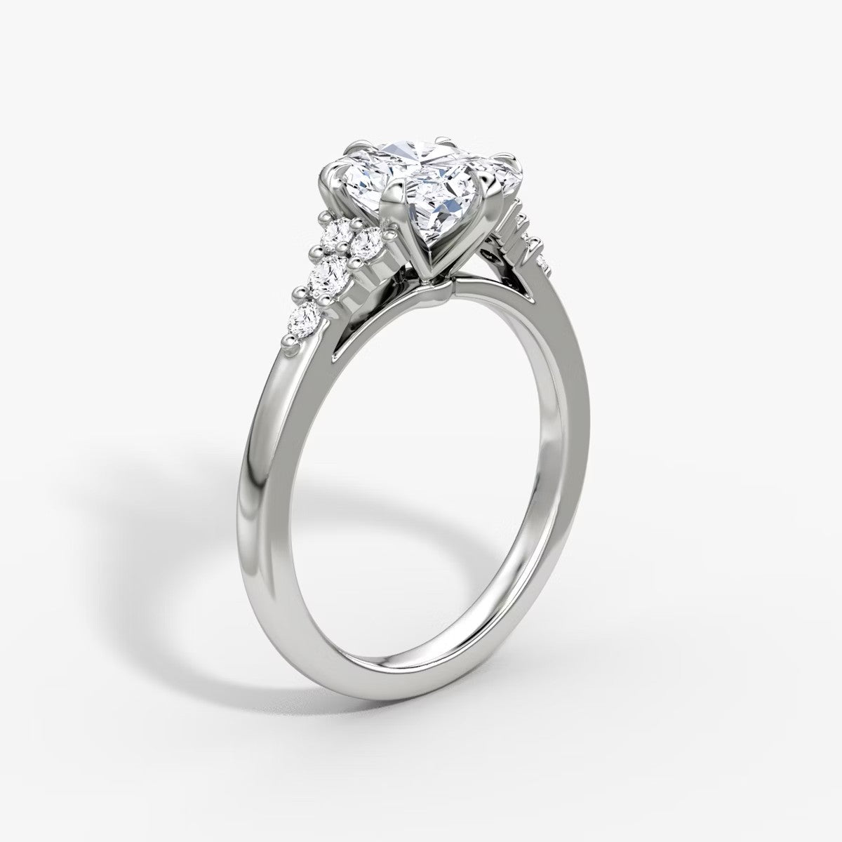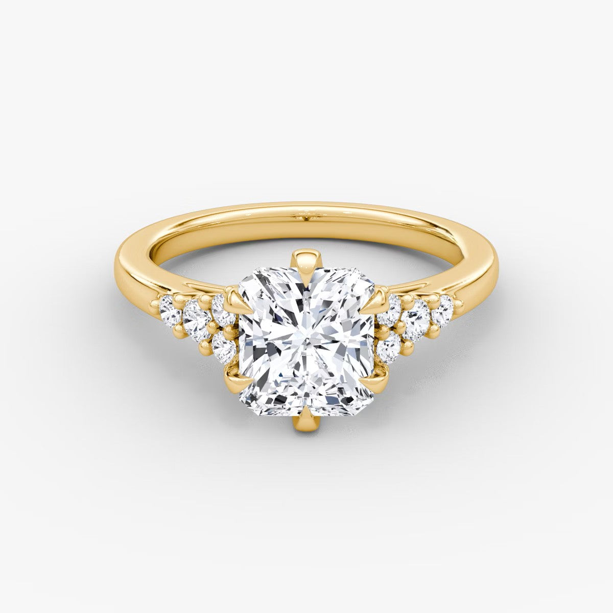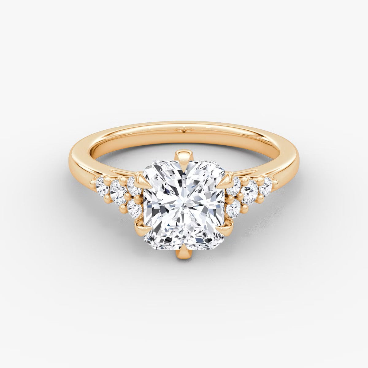 Radiant Cut - Plain Band - Cluster Ring - 14 K Gold