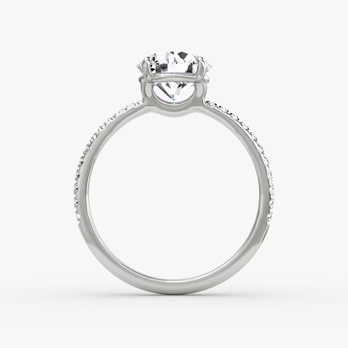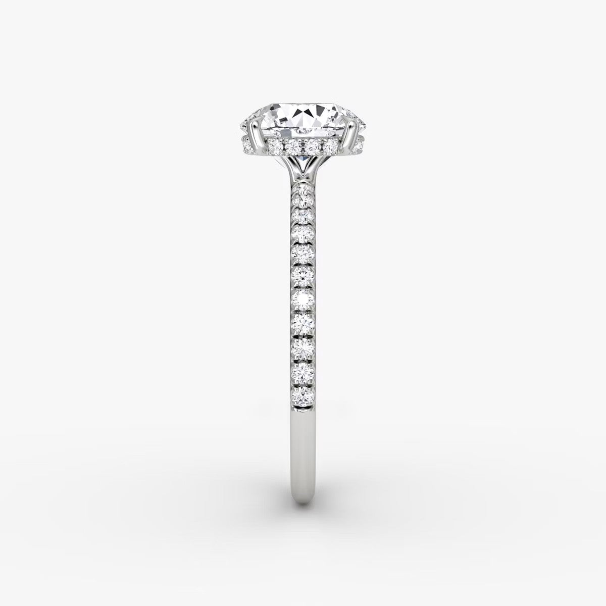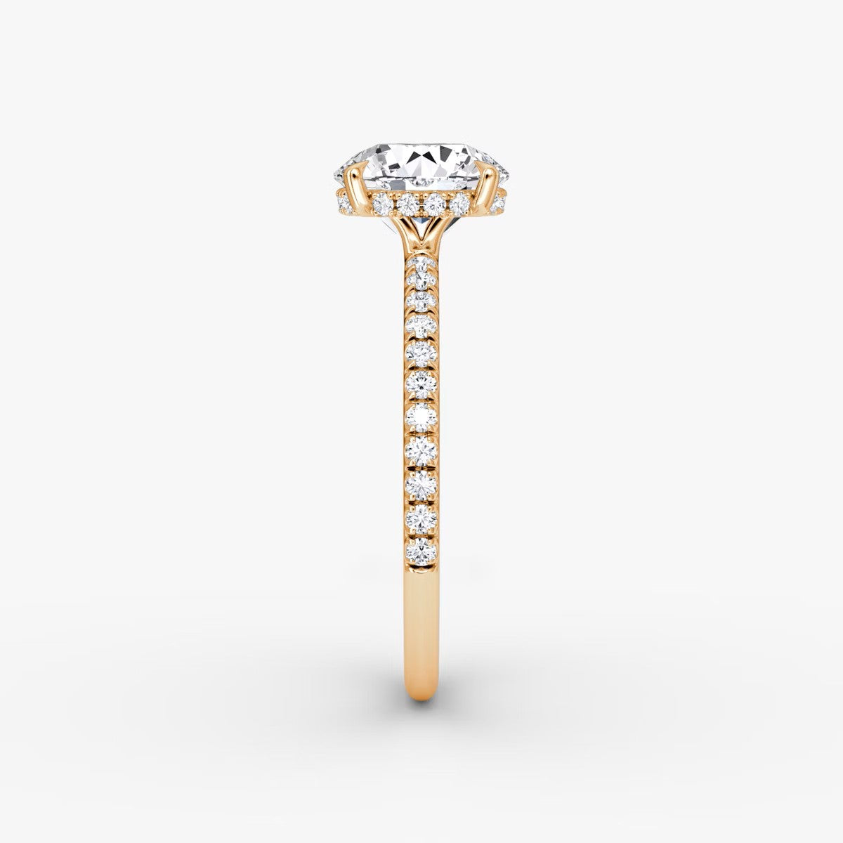 Round Cut - Pave Band Hidden Halo - Classic Engagement Ring- 14 K Gold