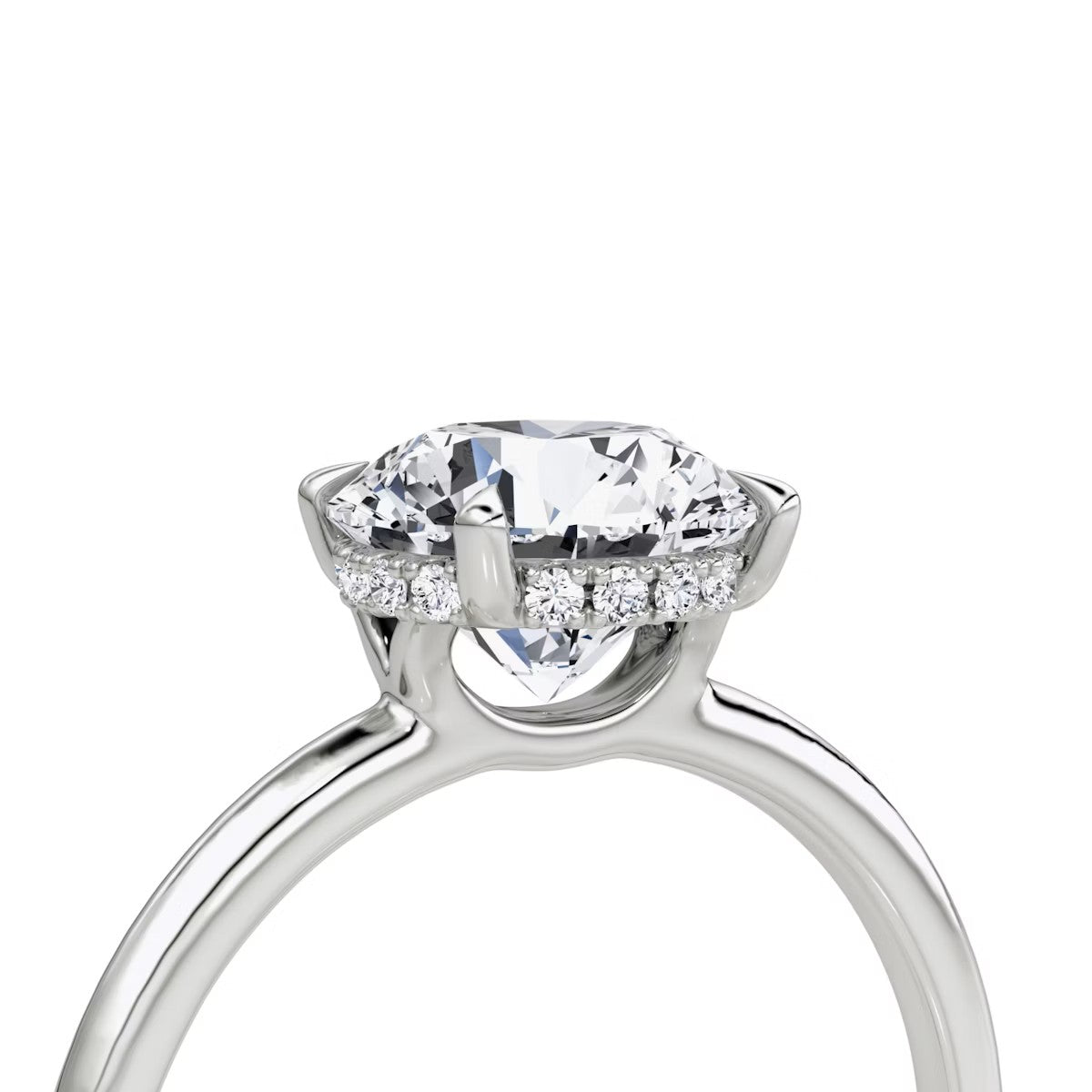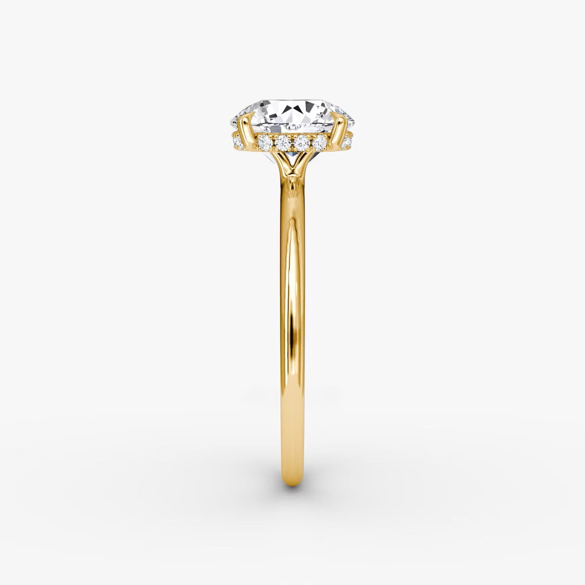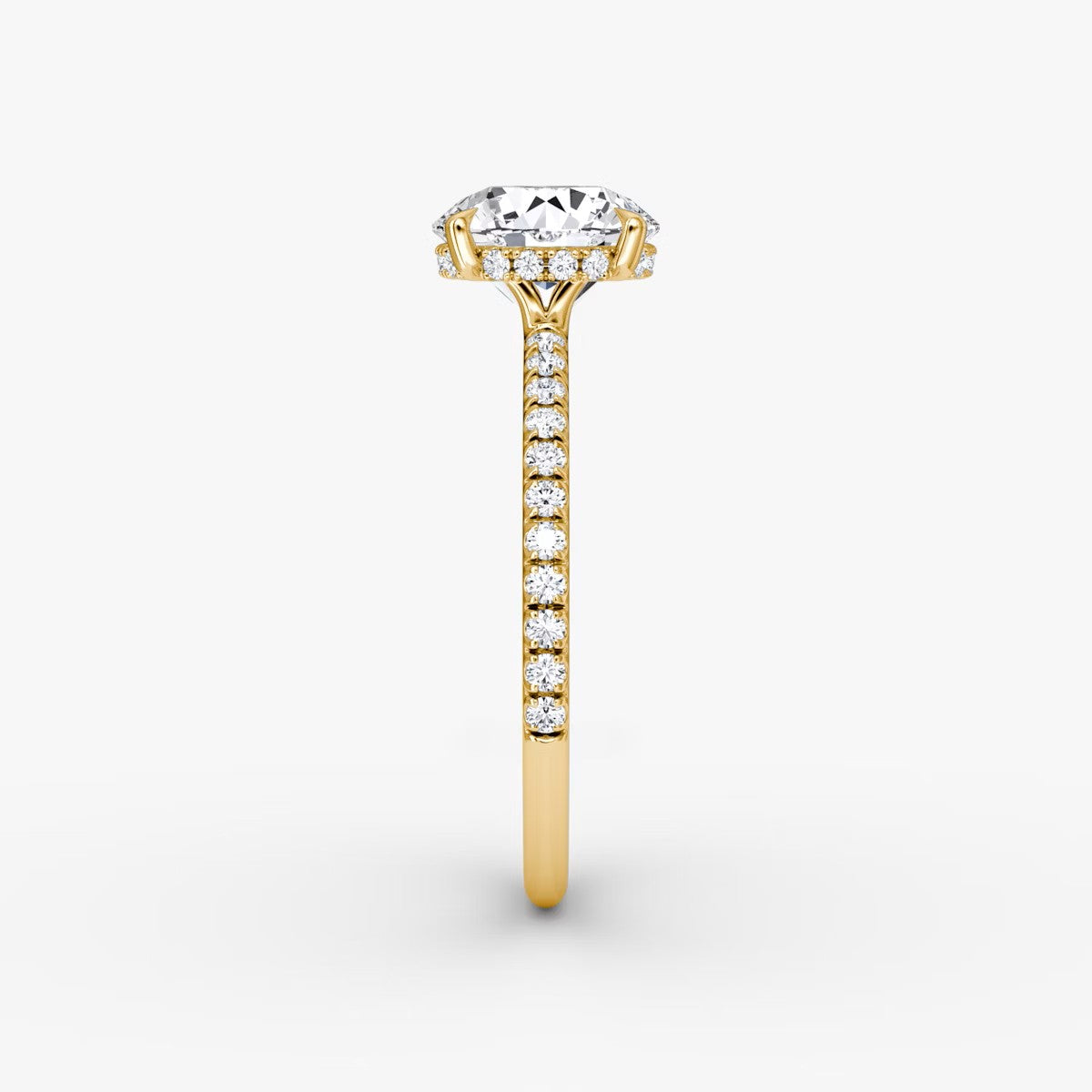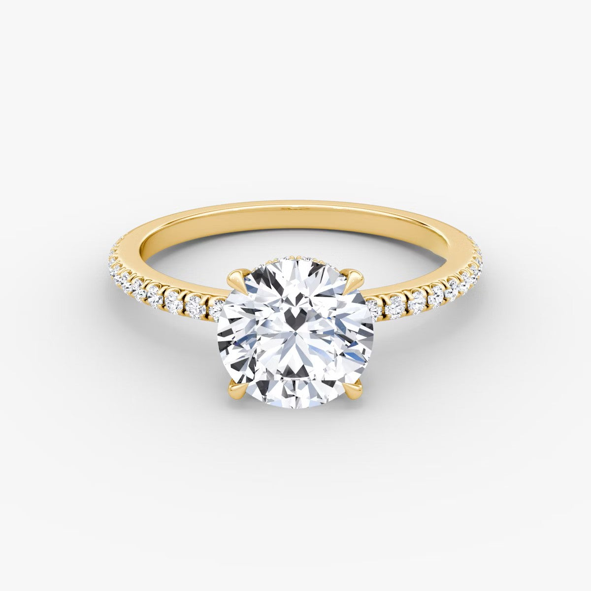 Round Cut - Pave Band Hidden Halo - Classic Engagement Ring- 18 K Gold