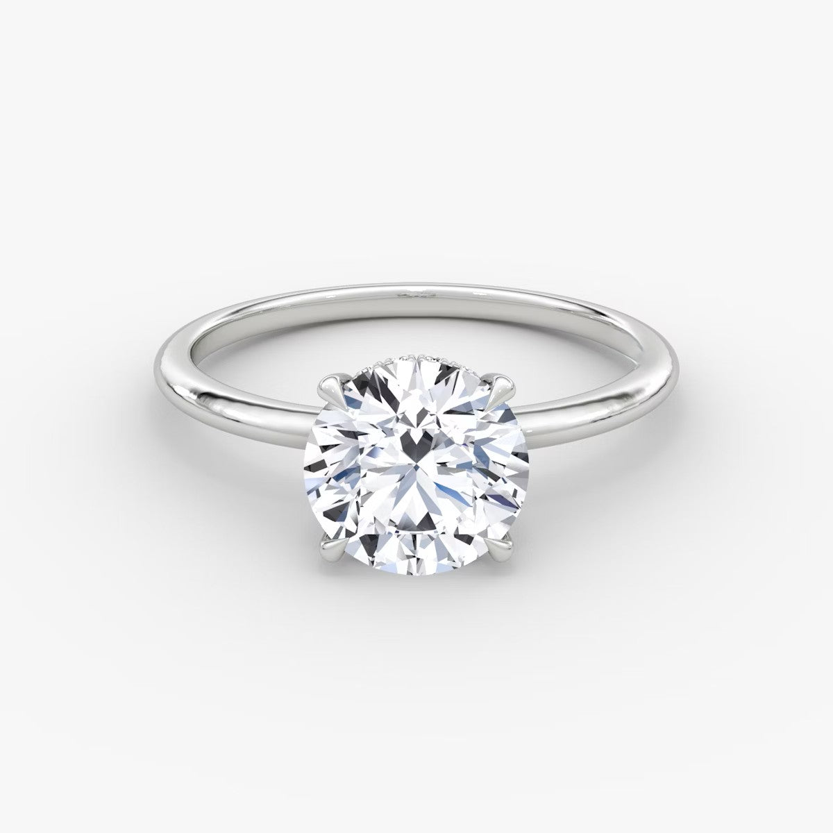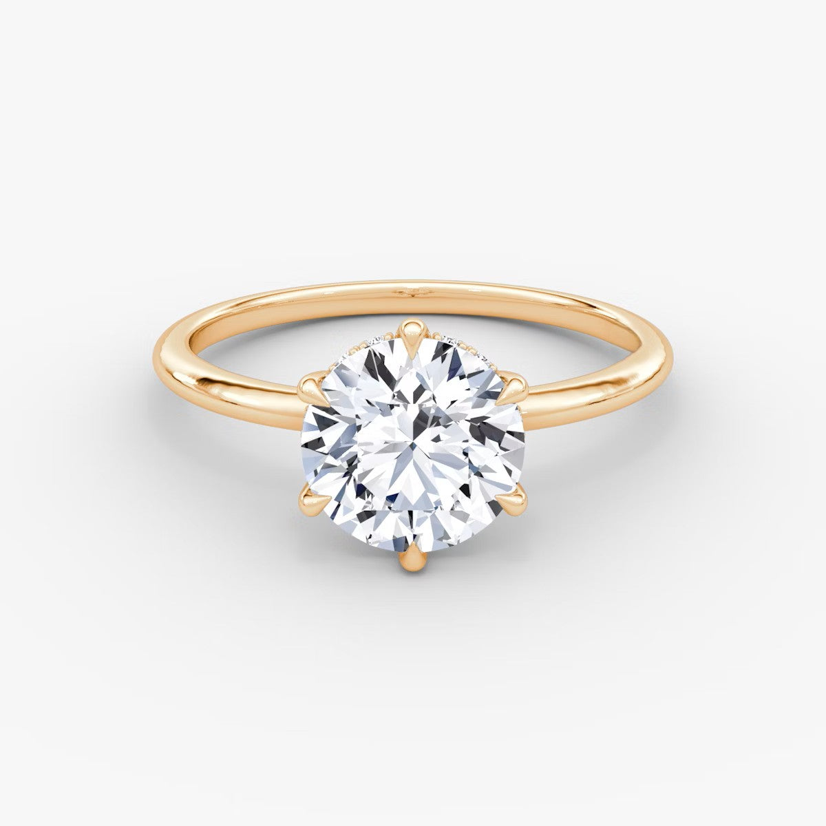 Round Cut - Plain Band Hidden Halo - Classic Engagement Ring- 14 K Gold