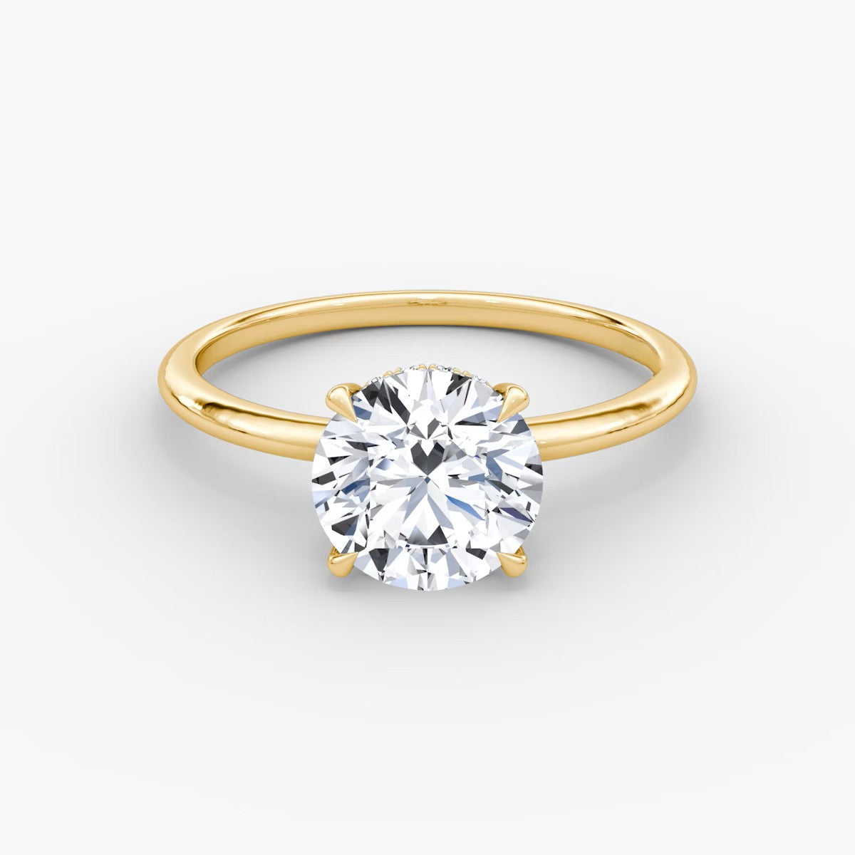 Round Cut - Plain Band Hidden Halo - Classic Engagement Ring- 18 K Gold