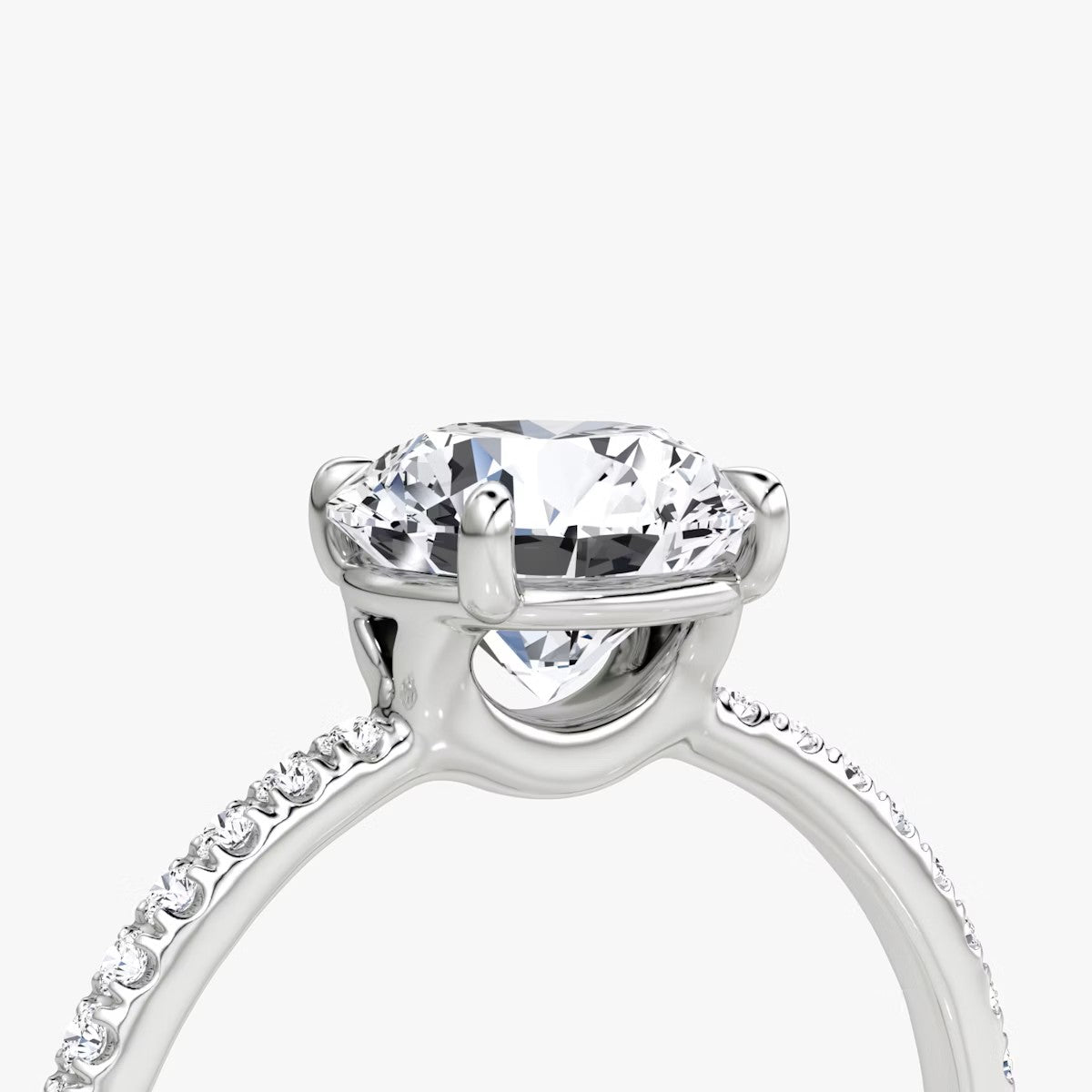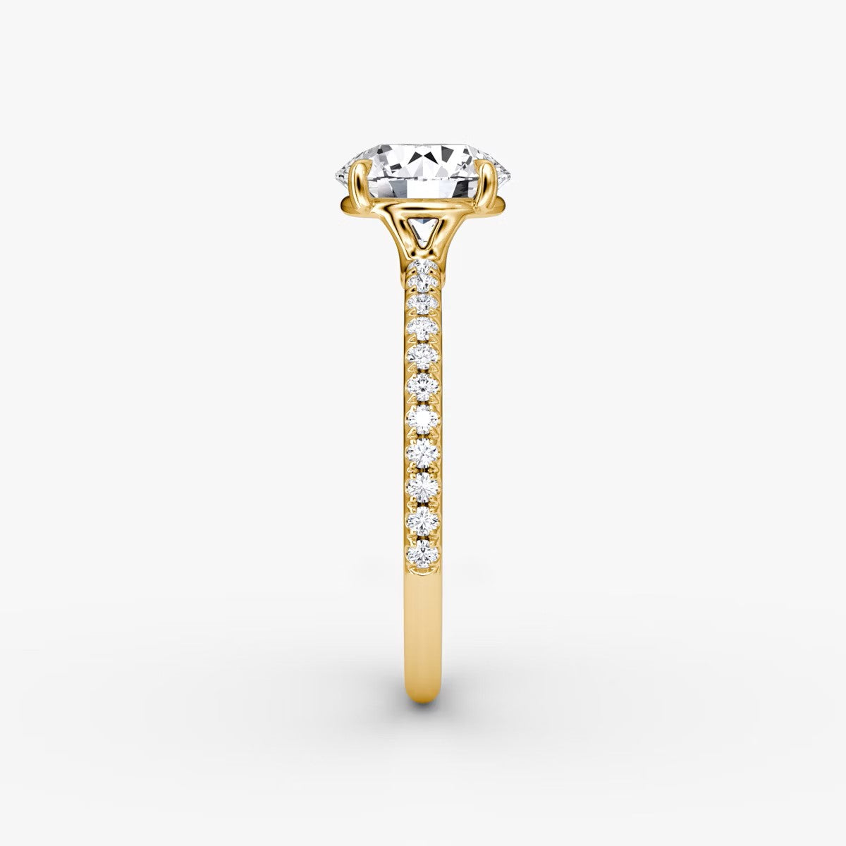 Round Cut - Pave Band - Classic Engagement Ring- 18 K Gold