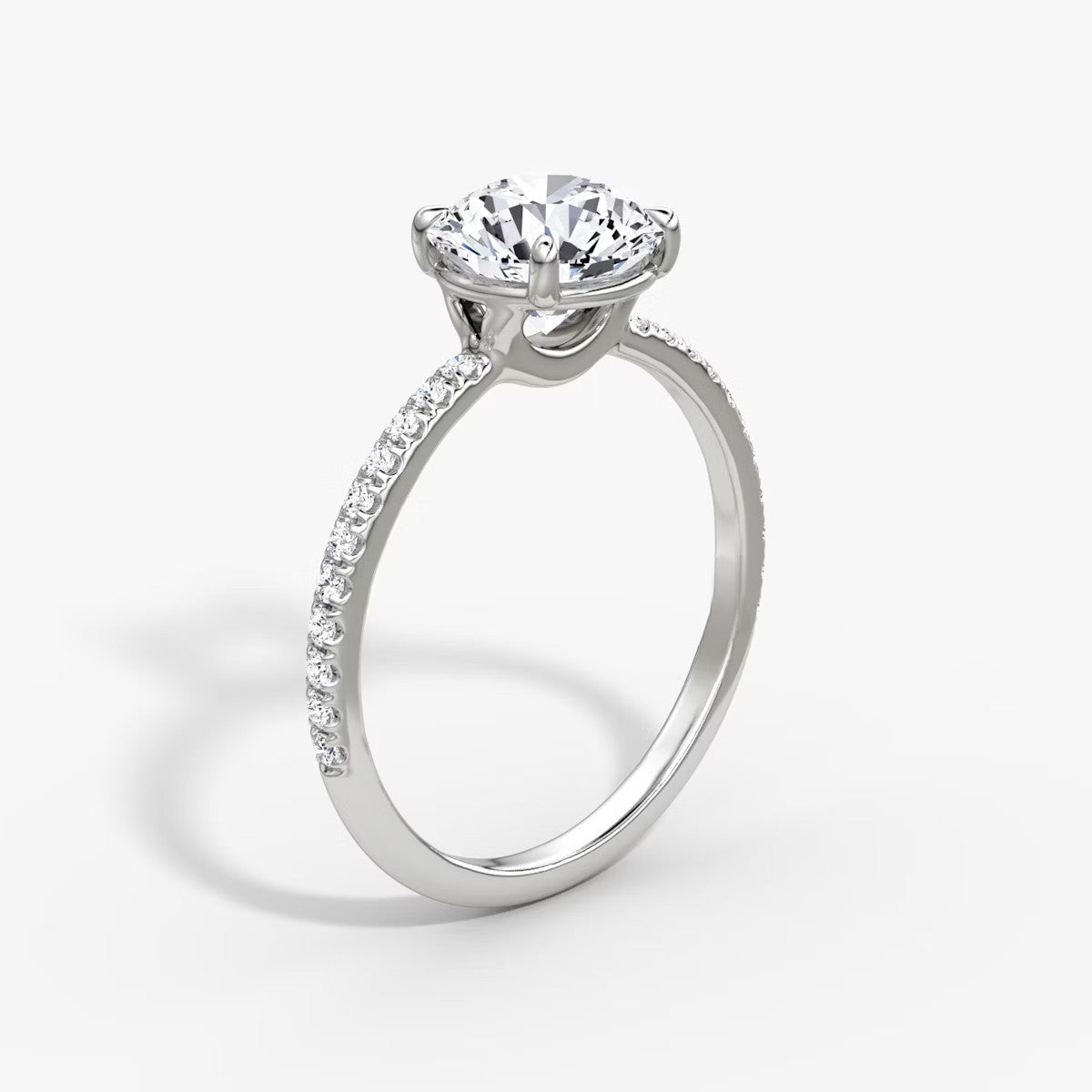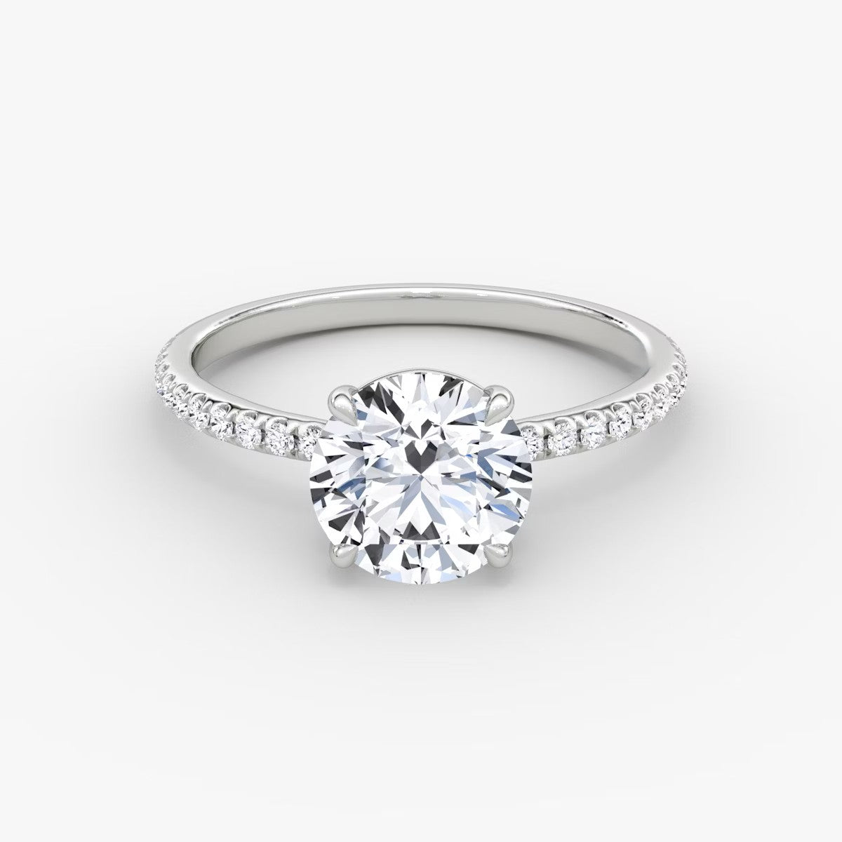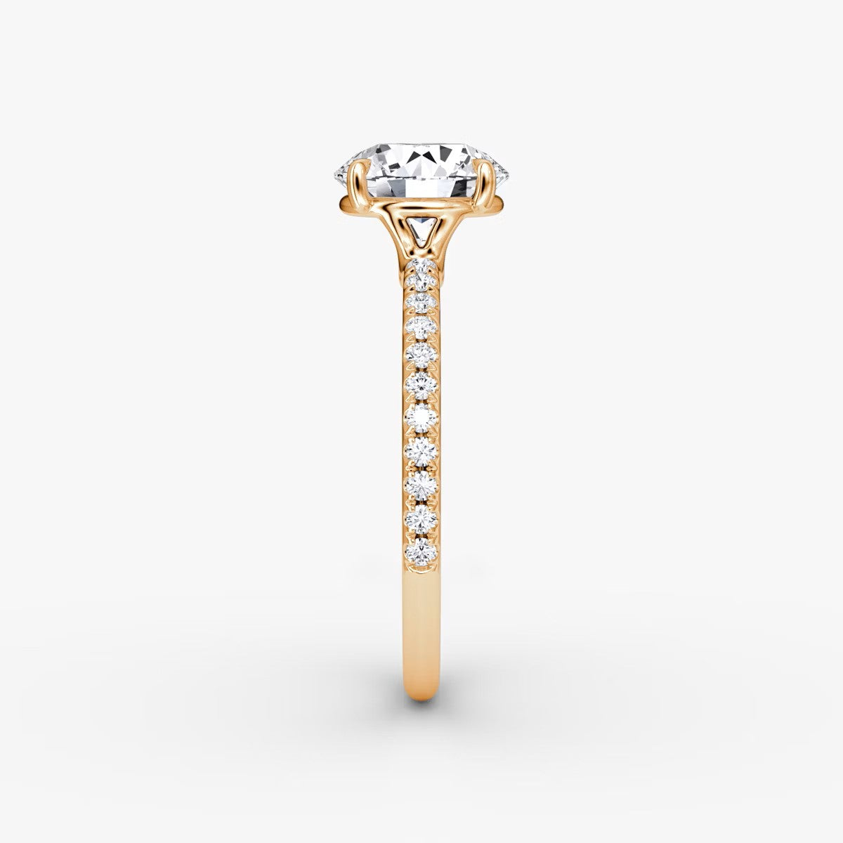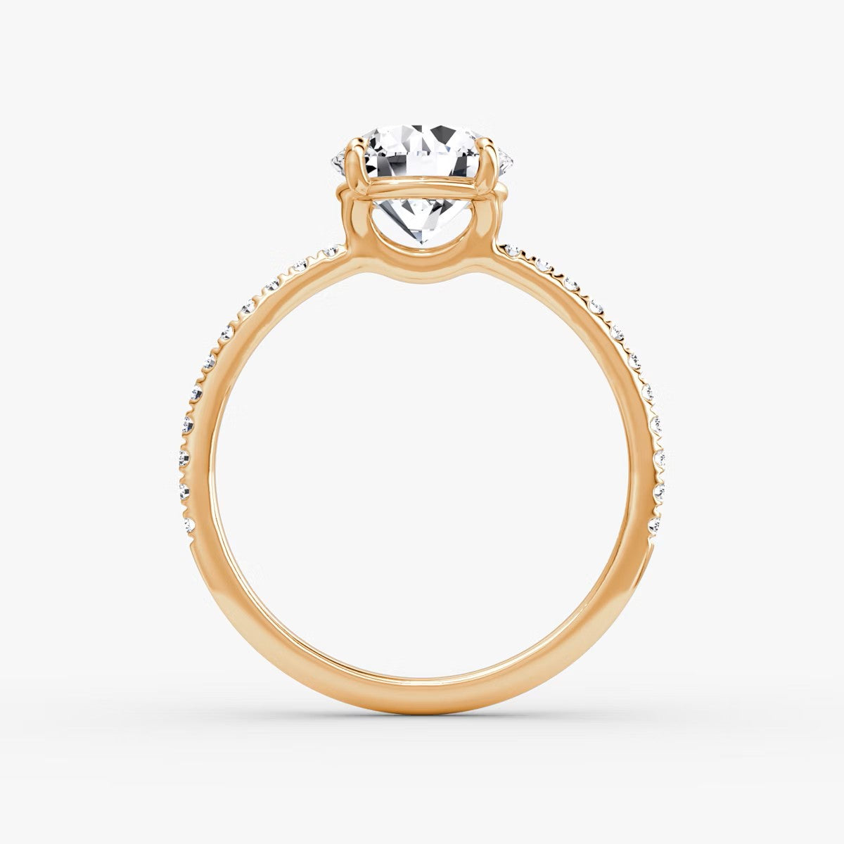Round Cut - Pave Band - Classic Engagement Ring- 14 K Gold
