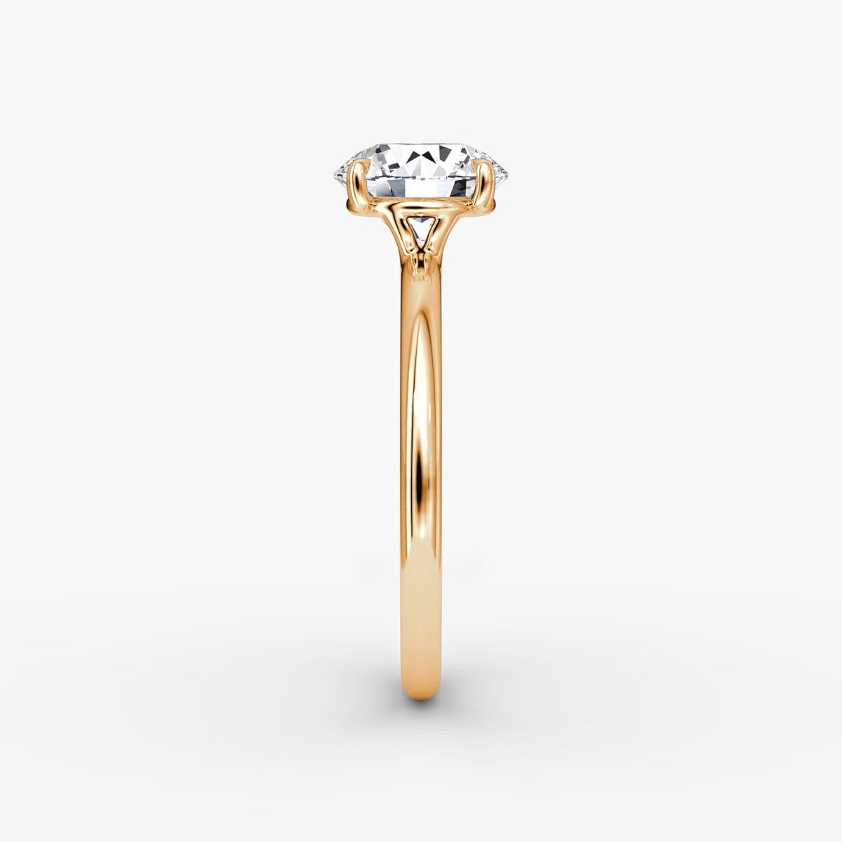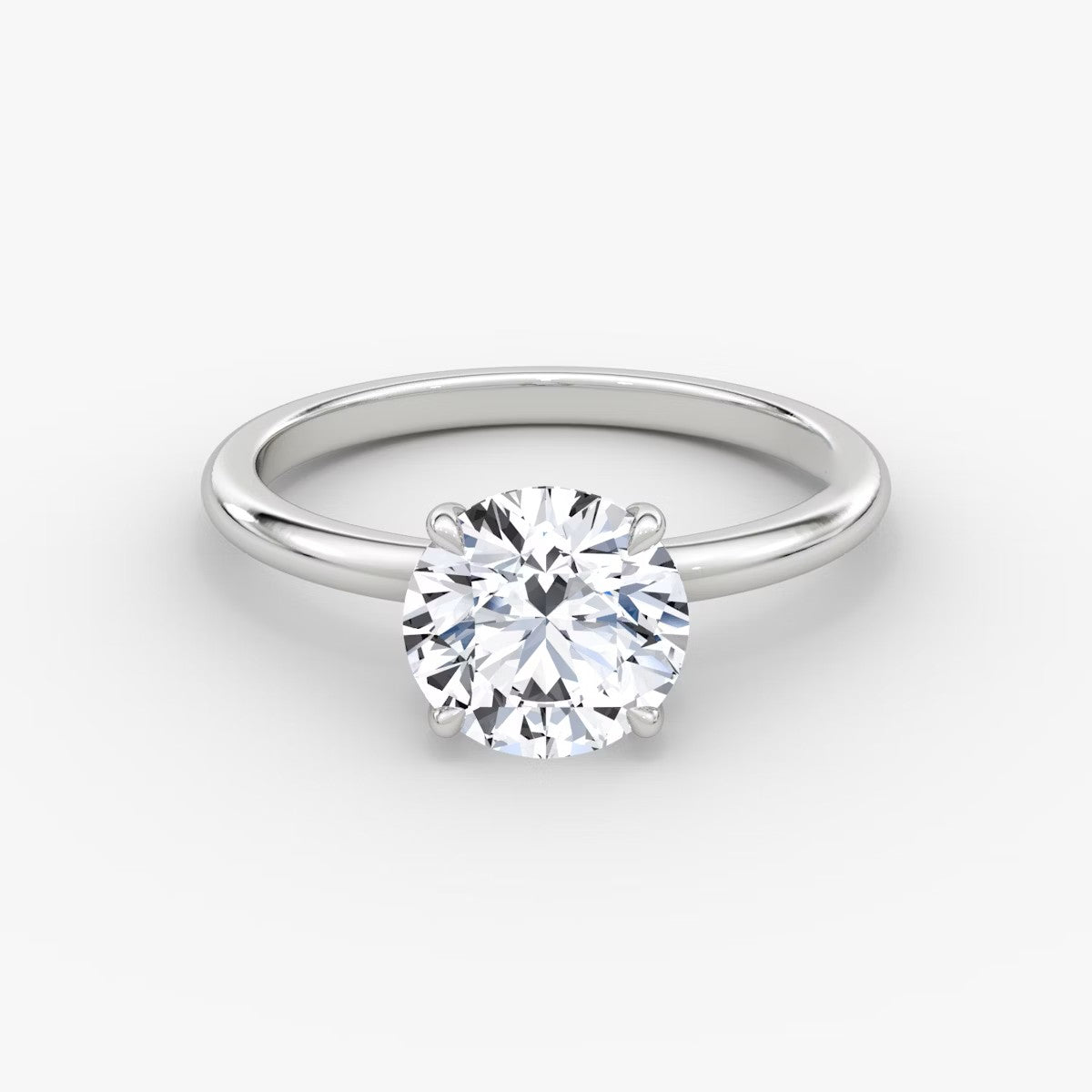 Round Cut - Plain Band - Classic Engagement Ring- 14 K Gold
