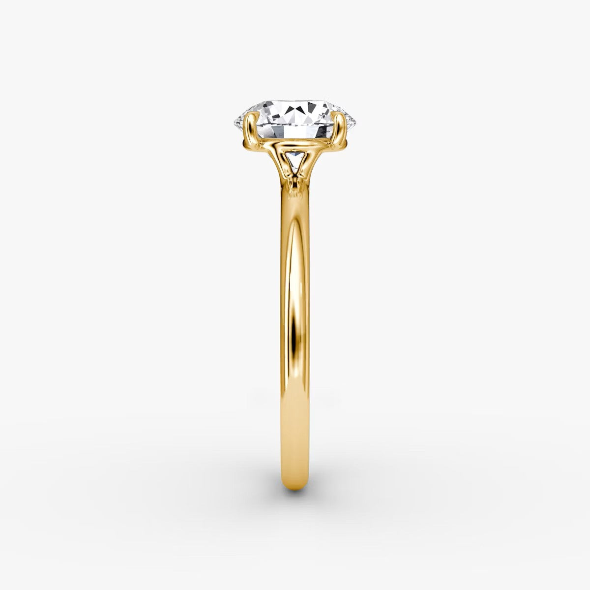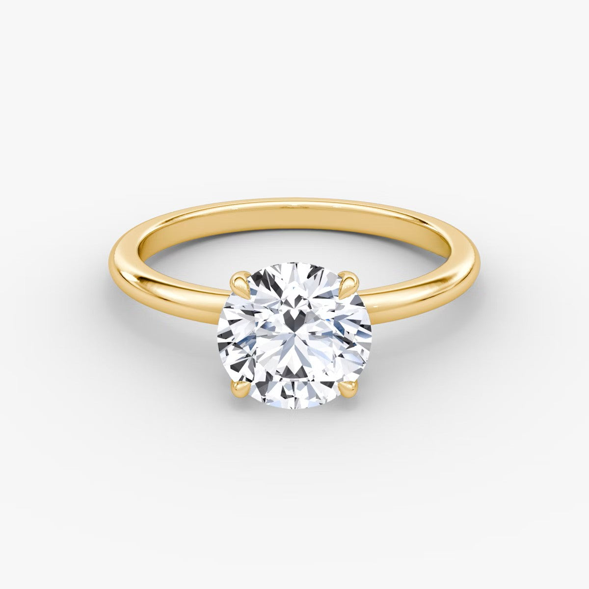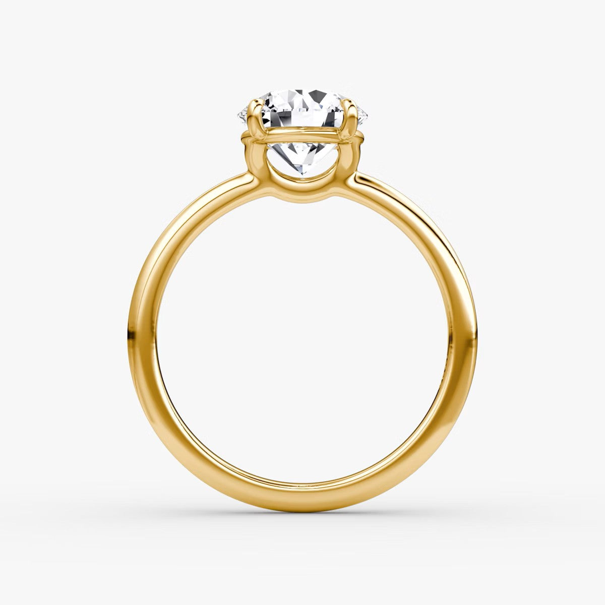 Round Cut - Plain Band - Classic Engagement Ring- 18 K Gold