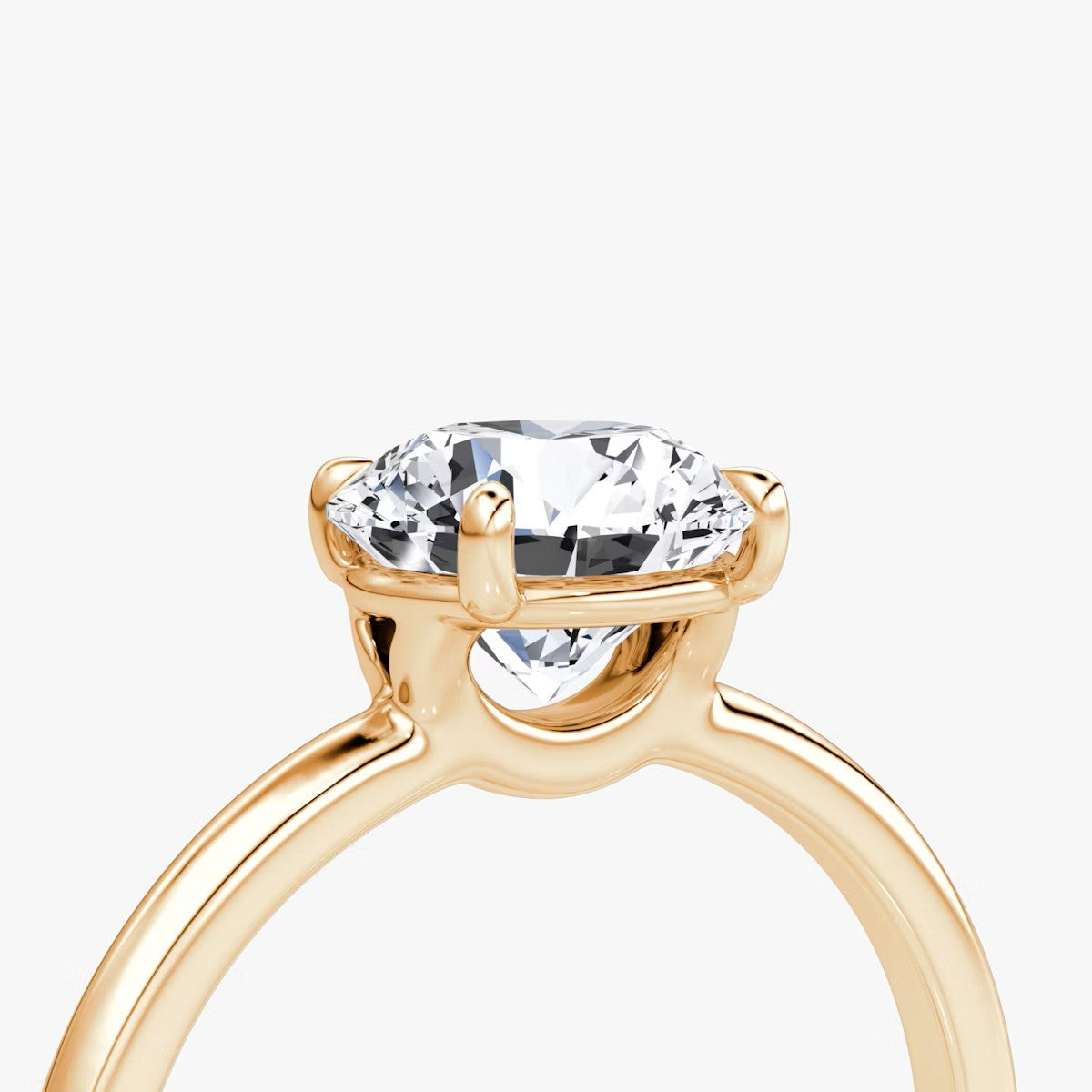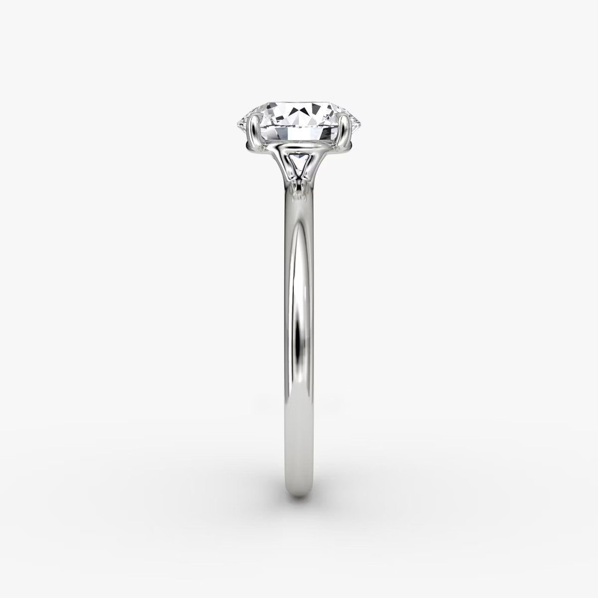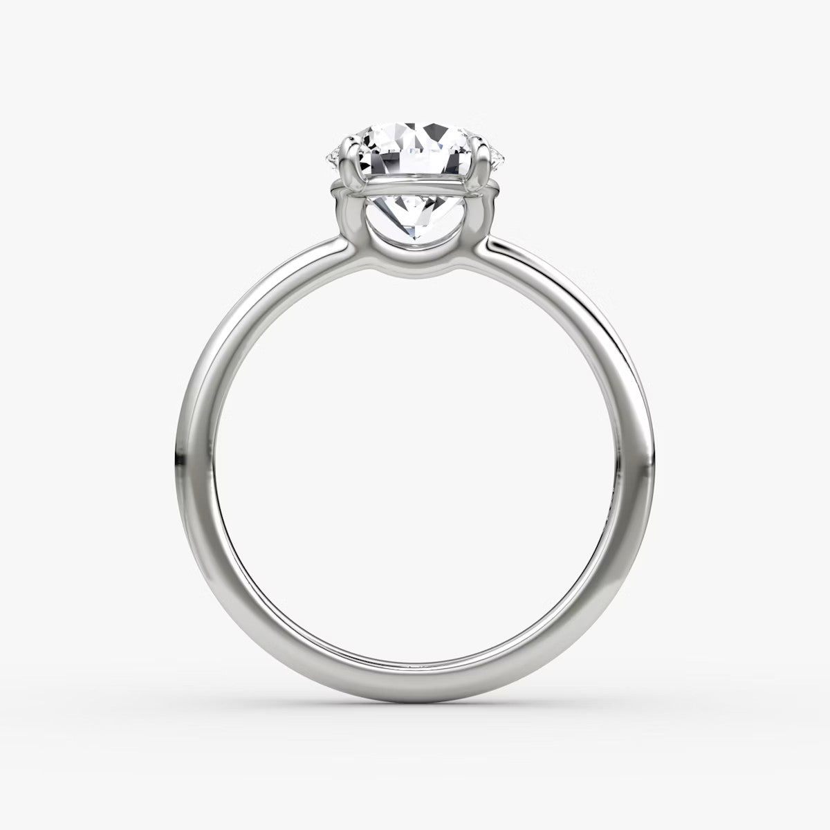 Round Cut - Plain Band - Classic Engagement Ring- 18 K Gold