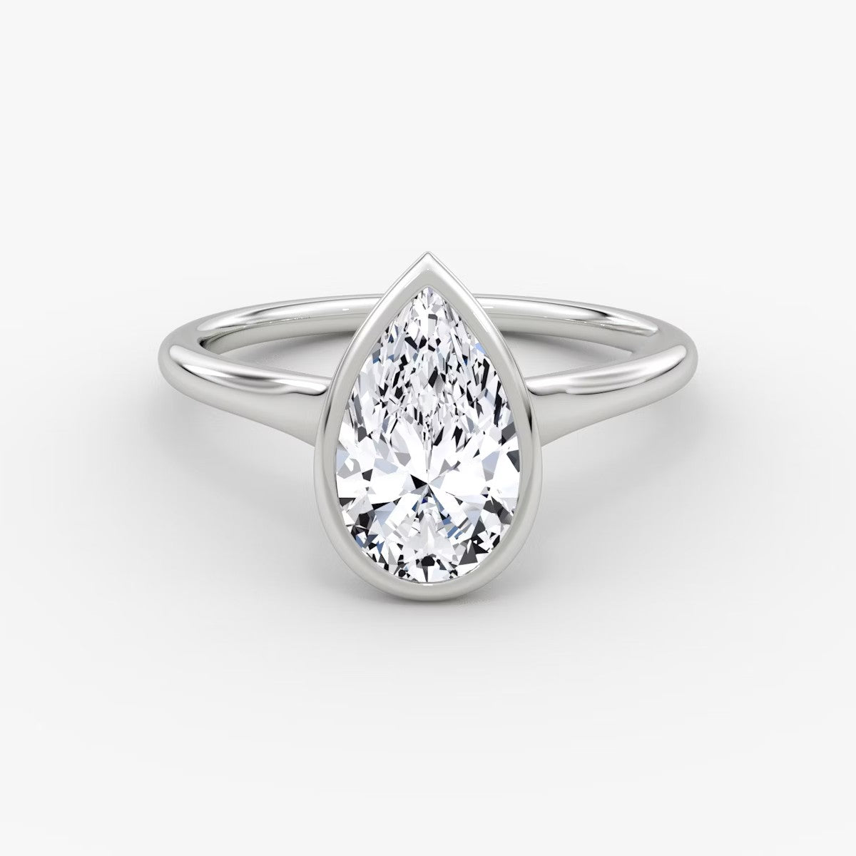 Pear Cut - Pave Band - Classic Engagement Ring- 18 K Gold