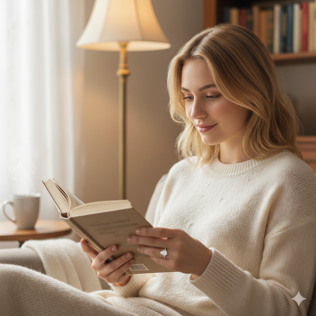 Oval Cut - Plain Band Hidden Halo - Classic Engagement Ring- 18 K Gold