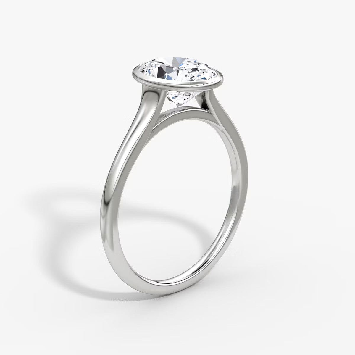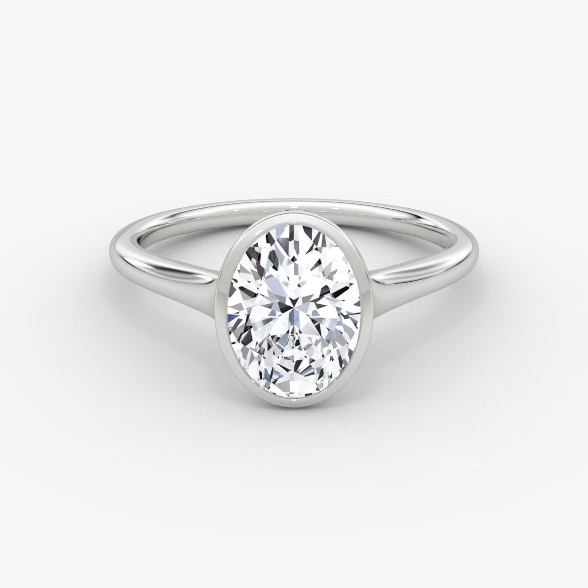 Oval Cut - Pave Band - Classic Engagement Ring- 18 K Gold
