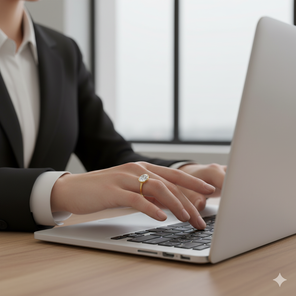 Oval Cut - Pave Band - Cluster Ring - 18 K Gold